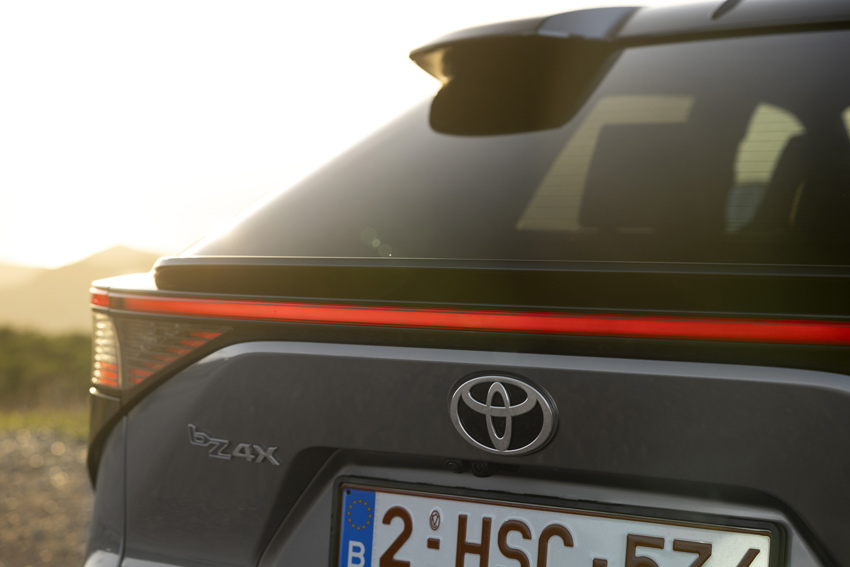 De nouveaux détails extérieurs viennent accentuer le design de cette nouvelle génération. Les principales modifications sont une calandre en forme de marteau devenue emblématique sur les nouvelles Toyota. Les blocs optiques fins sont reliés par un nouveau feu de position central à LED. La partie inférieure de la calandre et le pare-chocs ont été également redessinés. Des détails aérodynamiques supplémentaires viennent renforcer les performances du véhicule tels que le réhaussement du bord supérieur de l'aileron "queue de canard", pour les versions sans aileron arrière surélevé, et le rapprochement au niveau de la lunette arrière du becquet arrière. Elle est équipée de nouvelles jantes en alliage 18 pouces dotés d'enjoliveurs en résine aérodynamiques ou, en option, de jantes 20 pouces avec une finition usinée noire et brillante ainsi qu'une ornementation en résine optimisant le flux d'air. La bZ4X sera disponible dans un large choix de teintes, monochromes ou bicolores contrastées.